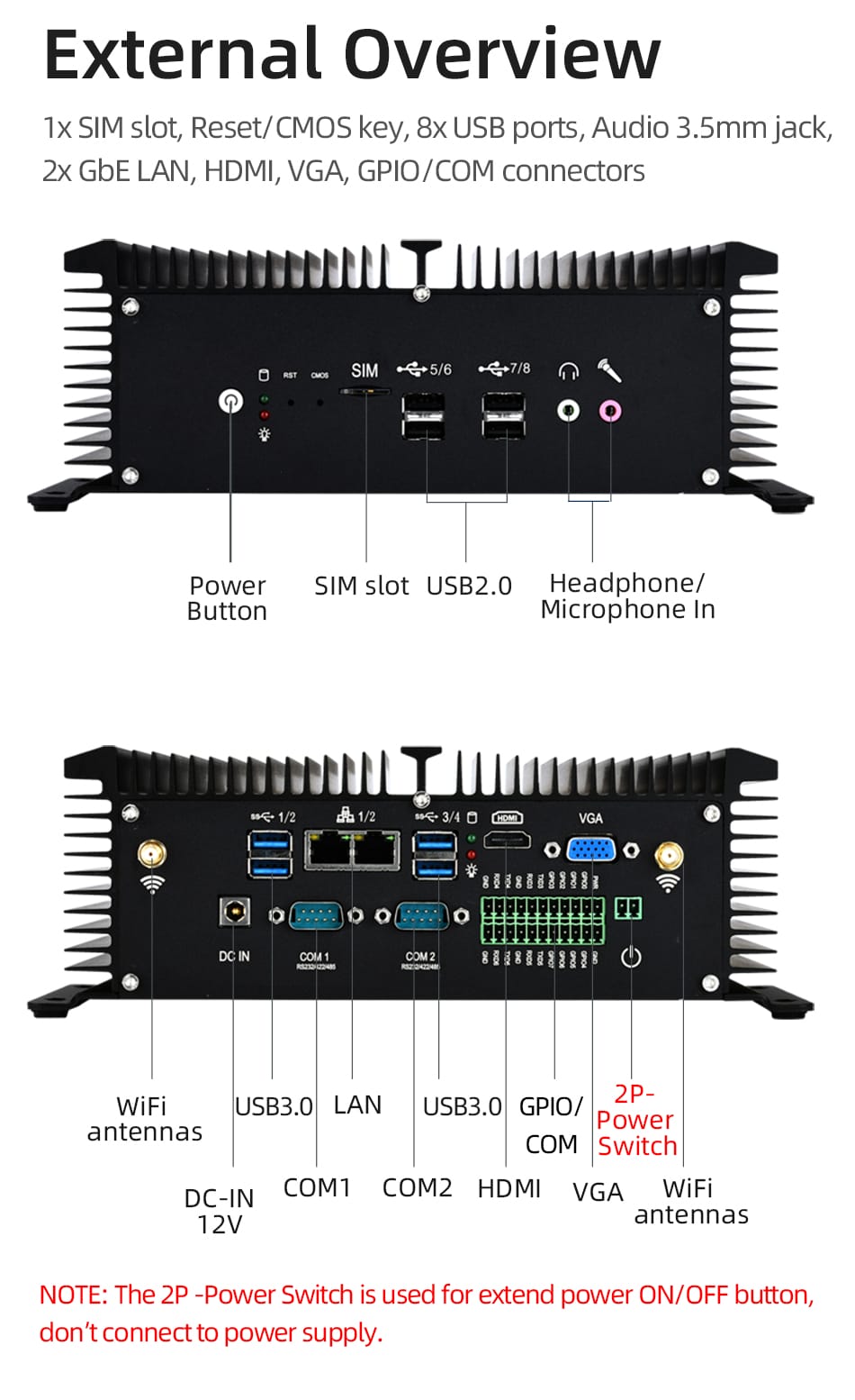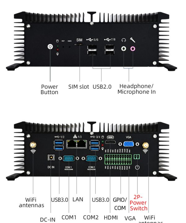 Fanless công nghiệp IOT Mini PC Intel Core I7 8550u 6x RS232 RS422 RS485 GPIO HDMI VGA 8X USB Windows Linux Hỗ trợ Wifi 4G LTE