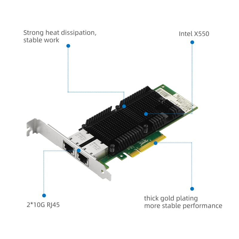 LR-LINK 1025pt 10GB PCI-E X8 card mạng đồng kép RJ45 cổng PCI nhanh Ethernet Lan Adapter Nic so sánh với Intel X550-T2